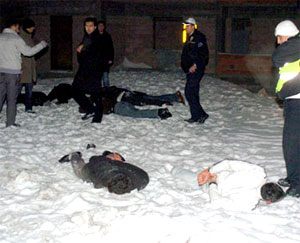 Kendilerine müdahale eden polislere direnen 9 kişi, olay yerine giden resmi ve sivil ekiplerin de yardımıyla kar üzerine yatırılıp kelepçe takılarak etkisiz hale getirildi ve gözaltına alındı.